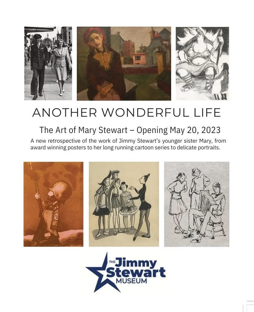 The Jimmy Stewart Museum will be featuring a new exhibit entitled Another Wonderful Life: the Art of Mary Stewart. Jimmy Stewart's sister Mary was a very talented artist who chose to go to Carnegie Tech (now Carnegie Mellon) in Pittsburgh to continue her art education. She then moved to New York and got a job using her artistic talents at Charm Magazine. Through different mediums, Mary displayed a unique talent and the museum is thrilled to shine a spot light on her.