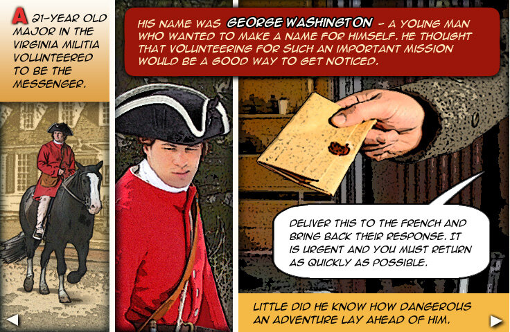 Screen shot from the graphic novel Young George Washington's Adventures.