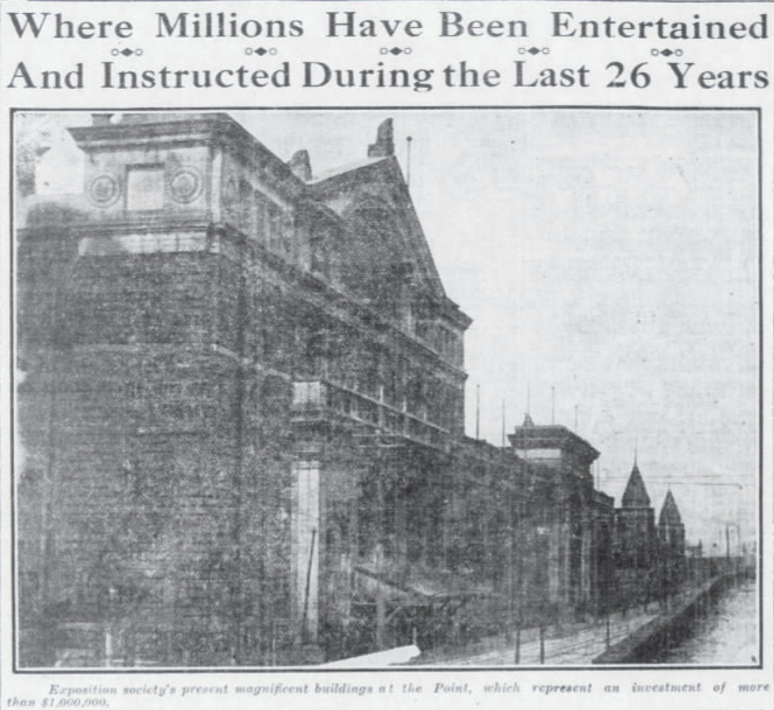Pittsburgh Exposition building seen in 1914 Pittsburgh Press