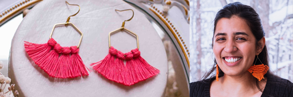 Prachi Singh creates bold, lightweight macrame jewelry that makes a statement. Each piece is unique and crafted by hand.