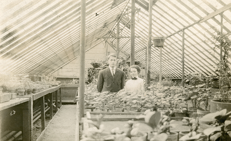 Elmer and Margaret McCracken in a greenhouse on the Heinz family estate, c. 1905-1910. (Detre Library & Archives at the History Center)