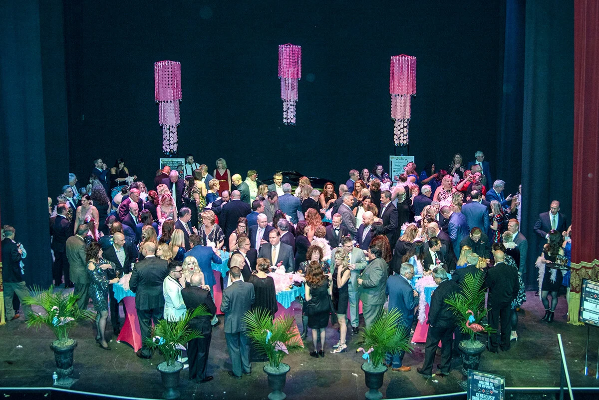 Beginning at 6:30 PM, VIP guests will attend a Masquerade Ball on The Palace Theatre stage where they will indulge in hors d'oeuvres from Elegant Catering and sip on champagne while EBT Jazz plays perched above in the loge section of the theatre.
