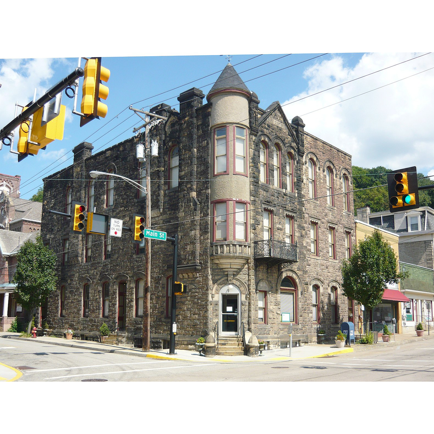 The Dick Building, alternatively referred to as the Cornerstone Building, stands as a significant commercial and residential structure situated in West Newton, Westmoreland County, Pennsylvania. Its initial construction dates back to 1890, with an expansion completed sometime between 1910 and 1925. This imposing edifice, crafted in the Romanesque Revival architectural style, boasts three stories and an L-shaped layout, characterized by its prominent corner semi-circular turret crowned with a conical roof. Notably, the building once served as the premises for a bank located on its ground floor.