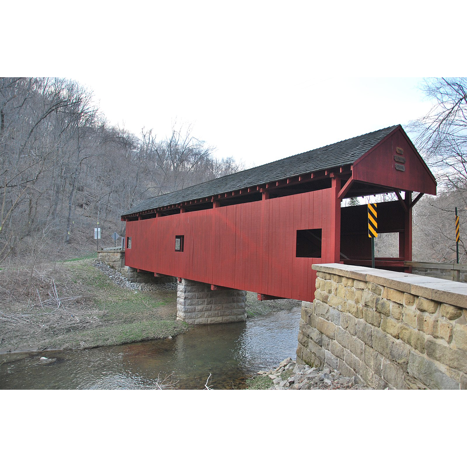 The Longdon L. Miller Covered Bridge, situated in West Finley, Pennsylvania, holds the designation of a historic bridge by the Washington County History & Landmarks Foundation.