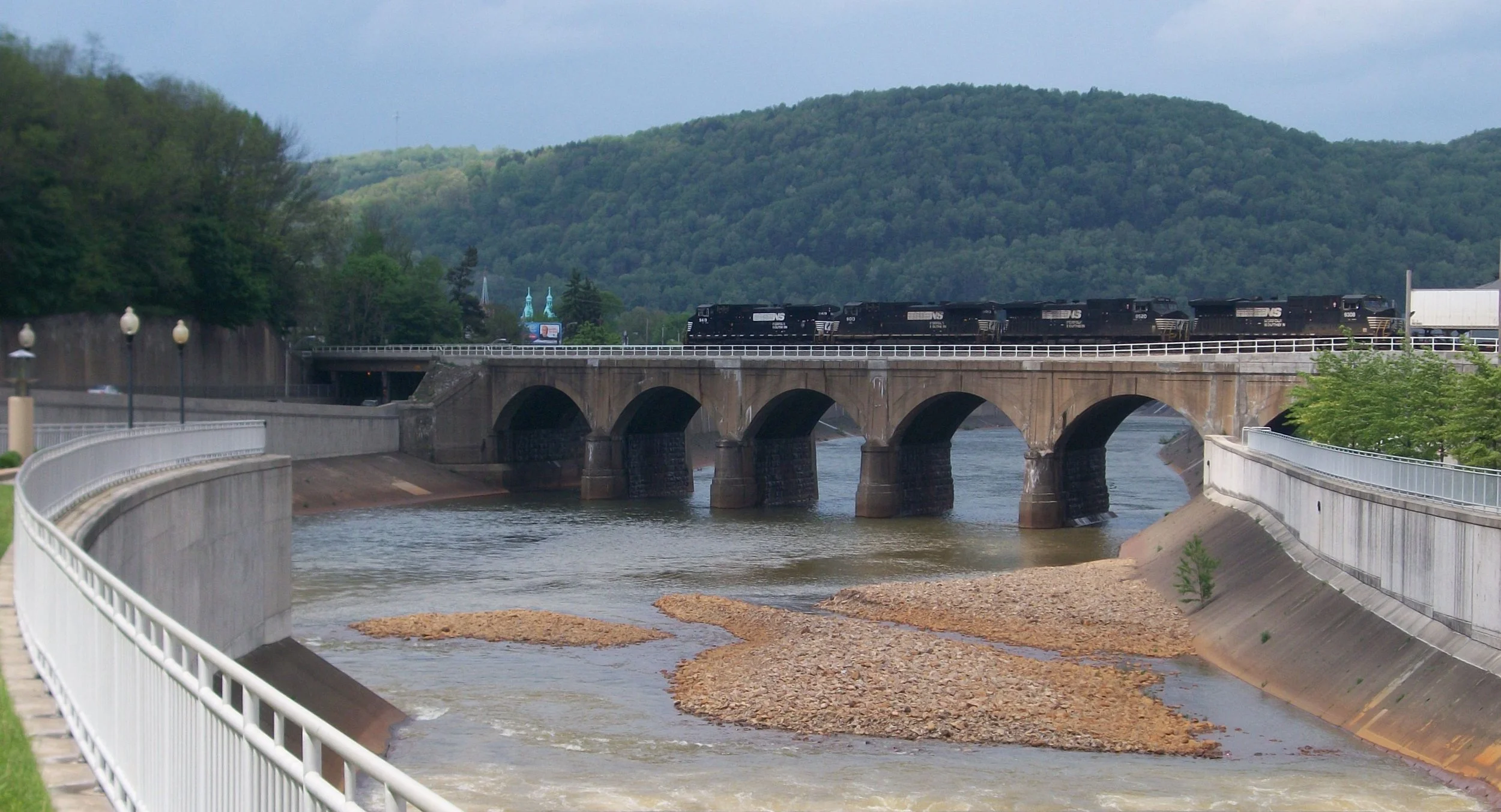 The Stone Bridge, spanning the Conemaugh River in Johnstown, Pennsylvania, is a seven-arch stone railroad bridge constructed by the Pennsylvania Railroad between 1887 and 1888. Although its upstream face was reinforced with concrete in 1929, the bridge remains a historic landmark visible from Point Park in downtown Johnstown.