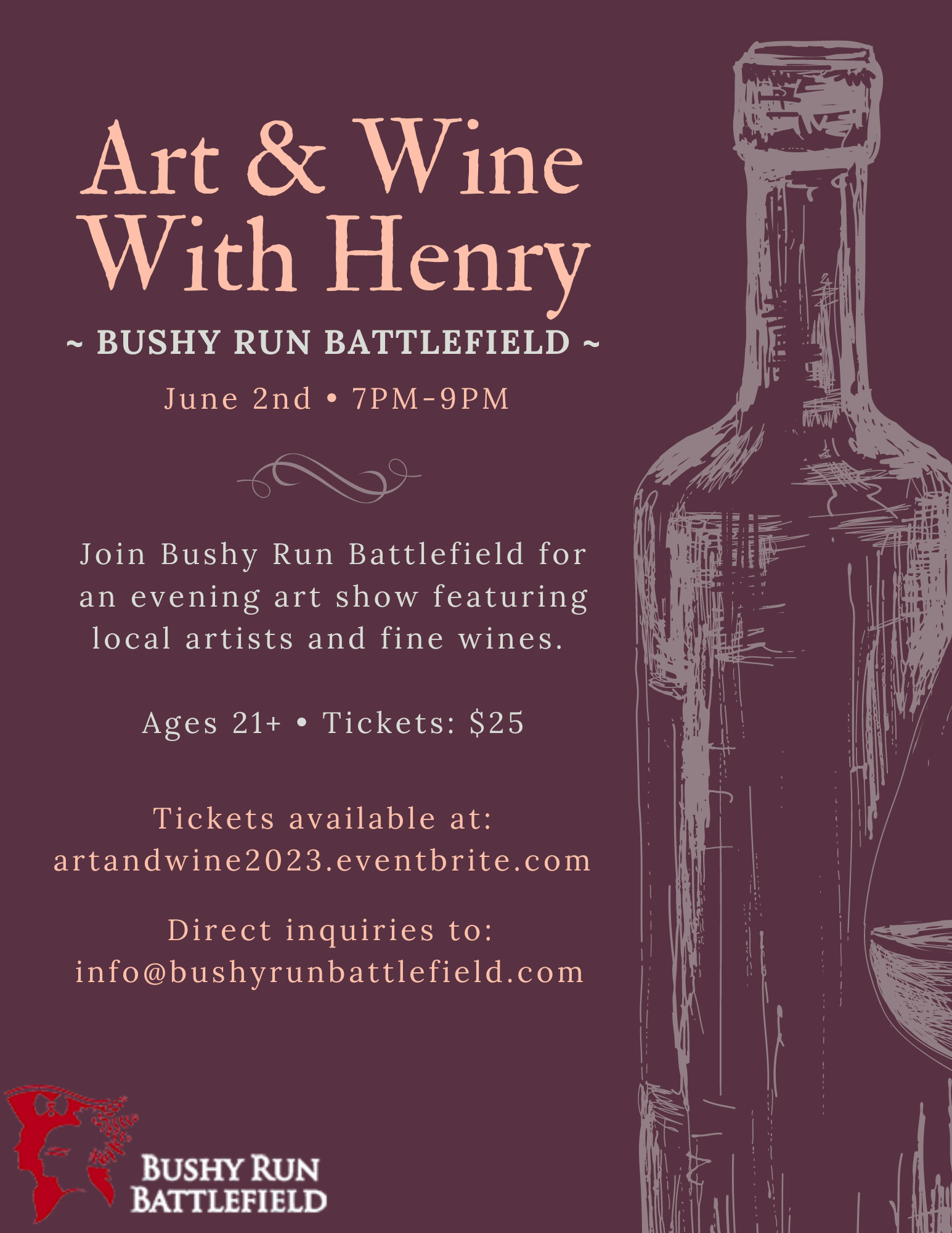 Join the Bushy Run Battlefield Heritage Society for an evening of art, great drinks, and history at Art and Wine with Henry!