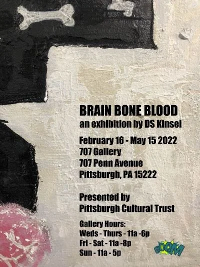 BRAIN BONE BLOOD is a solo exhibition by DS Kinsel that presents a collection of artifacts exploring abstracted anatomy, jujuism, and the amalgamation of identities.