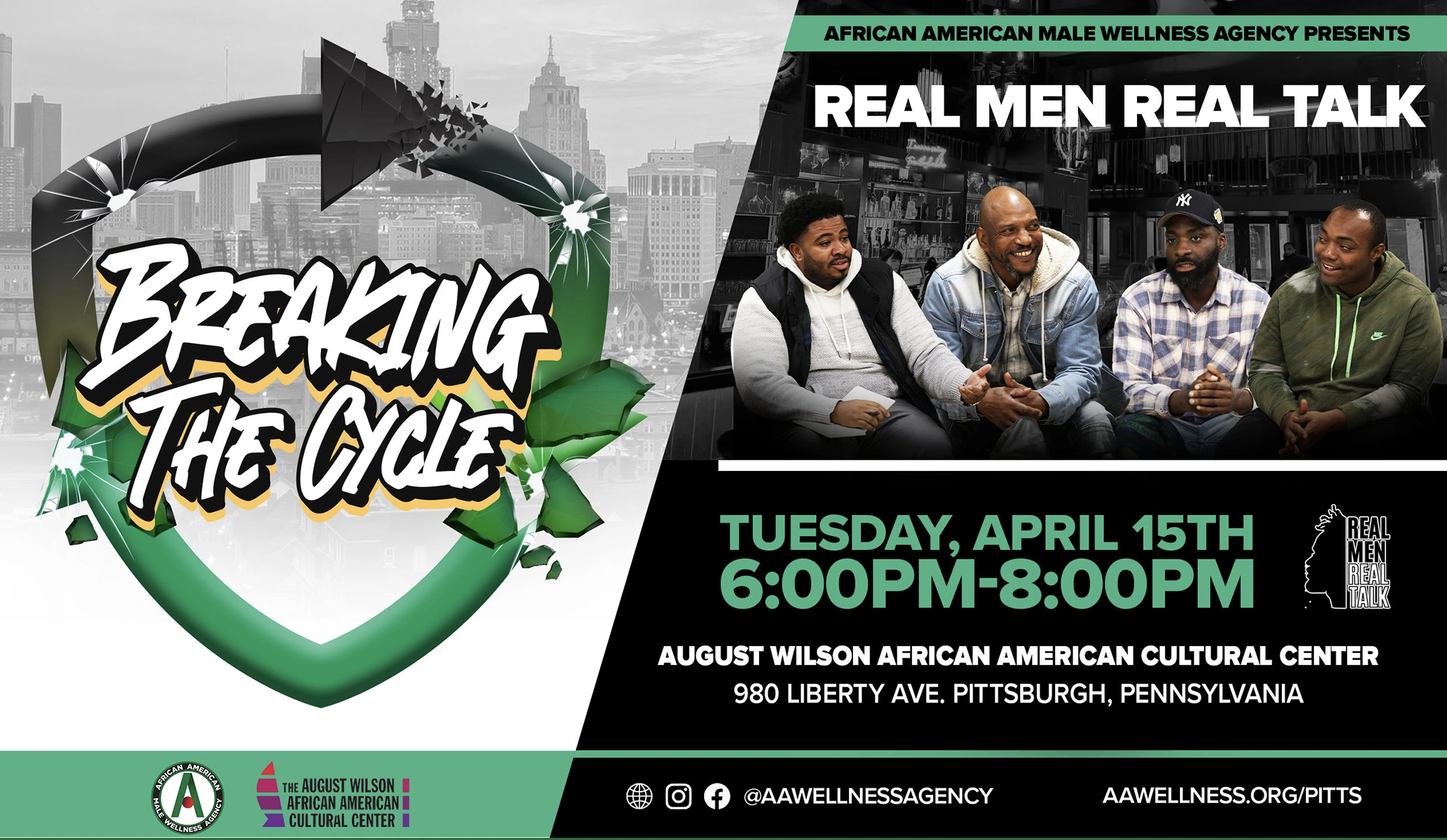 BREAKING THE CYCLE: REAL MEN REAL TALK Tuesday, April 15, 2025 6:00 PM 8:00 PM AUGUST WILSON AFRICAN AMERICAN CULTURAL CENTER 980 Liberty Avenue Pittsburgh, PA, 15222 United States (map) Google Calendar ICS Register here