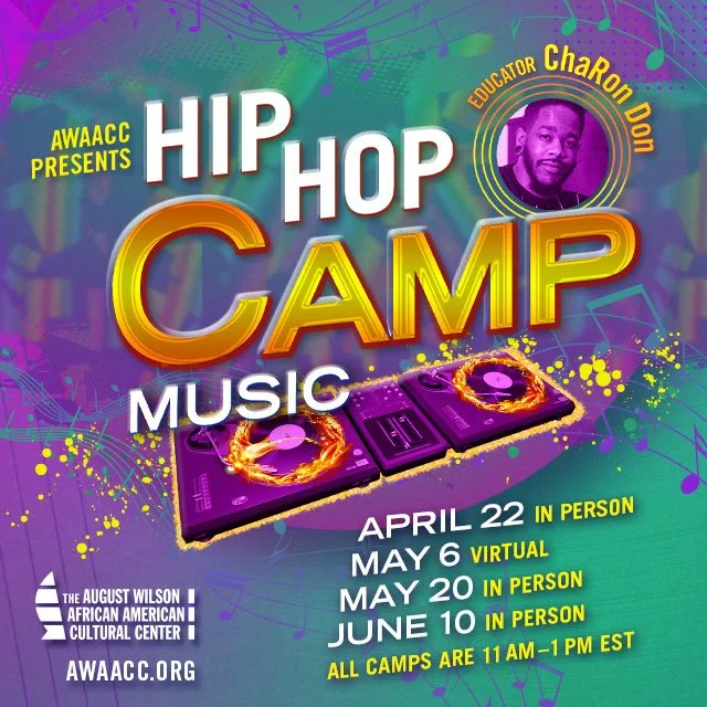 Hip-Hop Music Camp will include 4 sessions that will focus on the history and evolution of hip-hop, lyrical content and artistic responsibility, and discover the connection between August Wilson and hip-hop music. Music Camp will be taught by Educator, ChaRon Don, a music pioneer from Pittsburgh, Pennsylvania. Over the course of the camp, students will learn the importance of hip-hop and the role of rap music, how to create their own song including verses, chorus, and bridge, stage performance, and will prepare their own song. This camp is suitable for high school students, ages 14-18 years of age.