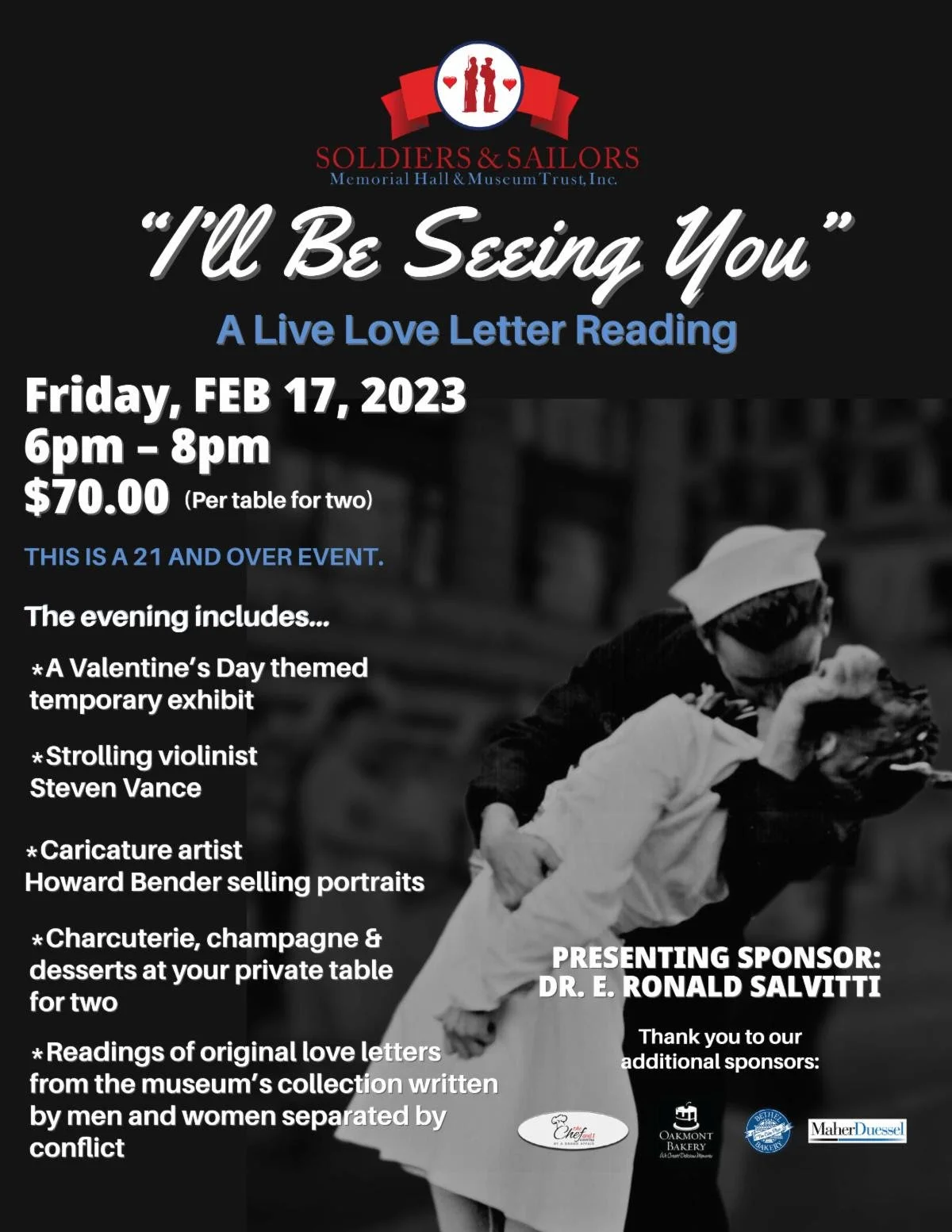 Enjoy a special Valentine’s Day themed temporary display to the background of a strolling violin by Steven Vance followed by live readings of authentic love letters from the museum’s archives from various military eras over charcuterie, champagne, and desserts at your own private table for two. Tickets include one complimentary beverage of your choice followed by a beer, wine, and champagne cash bar.
