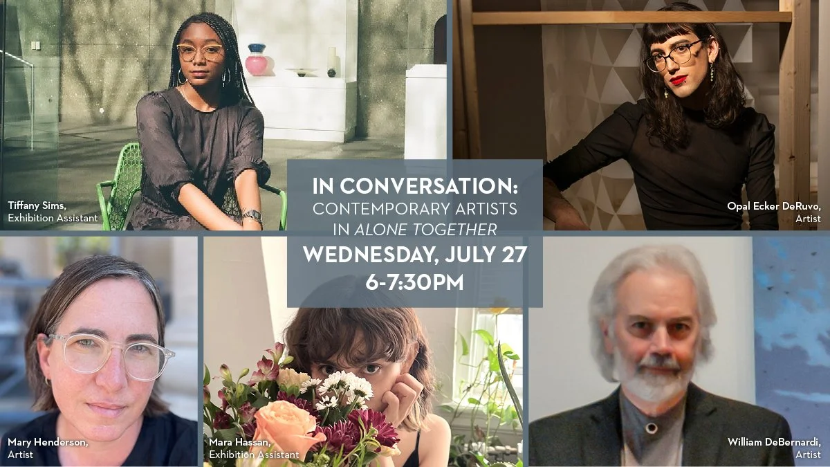 Come to the Museum and listen to a discussion about the creation of the exhibition, Alone Together: Encounters in American Realism, featuring contemporary artists Bill DeBernardi, Opal Ecker DeRuvo and Mary Henderson and exhibition assistants Mara Hassan and Tiffany Sims.