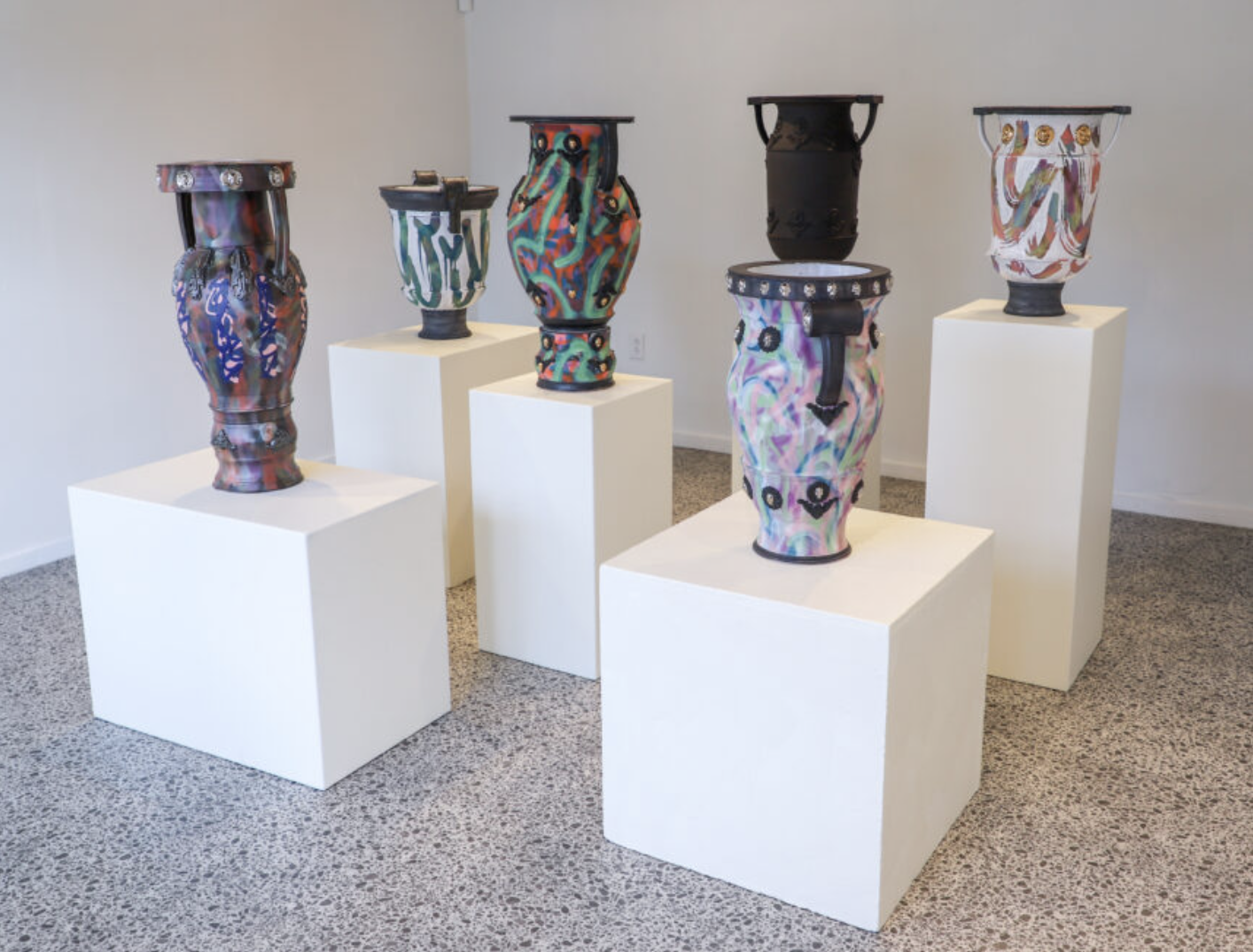 ceramic, latex rubber tubing, spray paint 12 x 10 x 26 in.