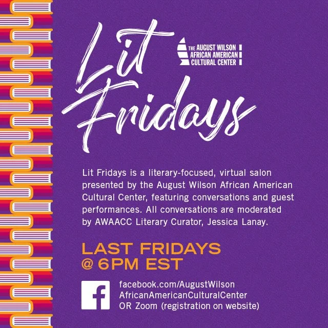 Lit Fridays is a literary-focused, virtual salon presented by the August Wilson African American Cultural Center, featuring conversations and guest performances on the last Friday* of each month at 6:00p EST via Facebook Live and Zoom Webinar. All conversations are moderated by AWAACC Literary Curator, Jessica Lanay.