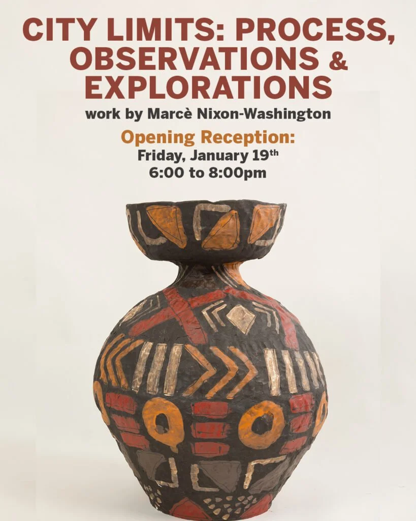 Join us for the opening reception of PCA&M’s 2023-24 ceramic artist in residence, Marcè Nixon-Washington’s exhibition “City Limits: Process, Observations & Explorations”.