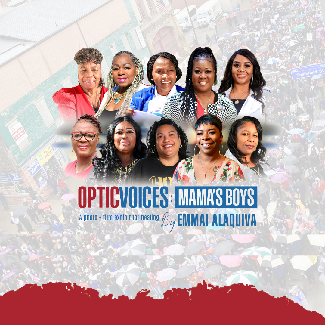 OPTICVOICES: Mama’s Boys is an interactive, mixed-media exhibit that orbits the healing of mothers who have lost their sons due to systemic violence and aims to fossilize their legacy. The vessel of cinematic and provocative storytelling is captured through the galvanizing lens of Emmy Award-winning, multidisciplinary artist, Emmai Alaquiva. The kindred journeys of mothers around the world are shared through artistic love letters in the form of photography, film, mixed media and augmented reality.