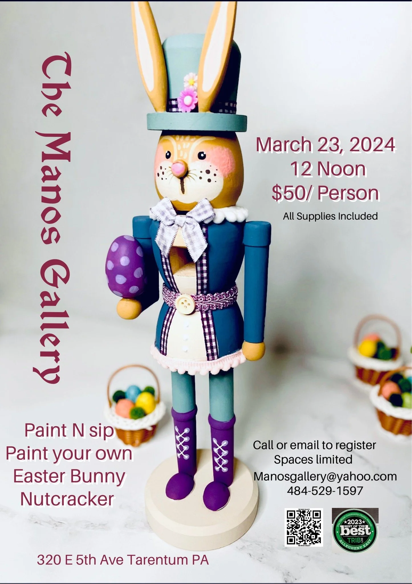 Paint N Sip Easter Nutcracker edition. It’s sure to be a great time. Spaces are limited, all supplies included.
