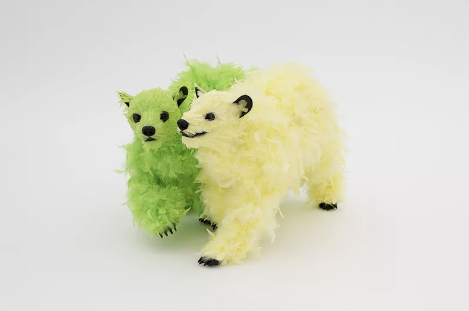 I Want It All embraces Pivi’s penchant for physical and visual excess. The exhibition will include photo and video documentation of Pivi’s ambitious performances as well as expansive site-specific installations. Dozens of playful sculptures of baby polar bears covered in colorful plumage will take over the museum’s special exhibition gallery, displaying human mannerisms and imbued with innocent curiosity. In addition, new soft sculptures produced in collaboration with Italian design company Moroso will debut as well as a museum commission made from 250 pairs of shoes.