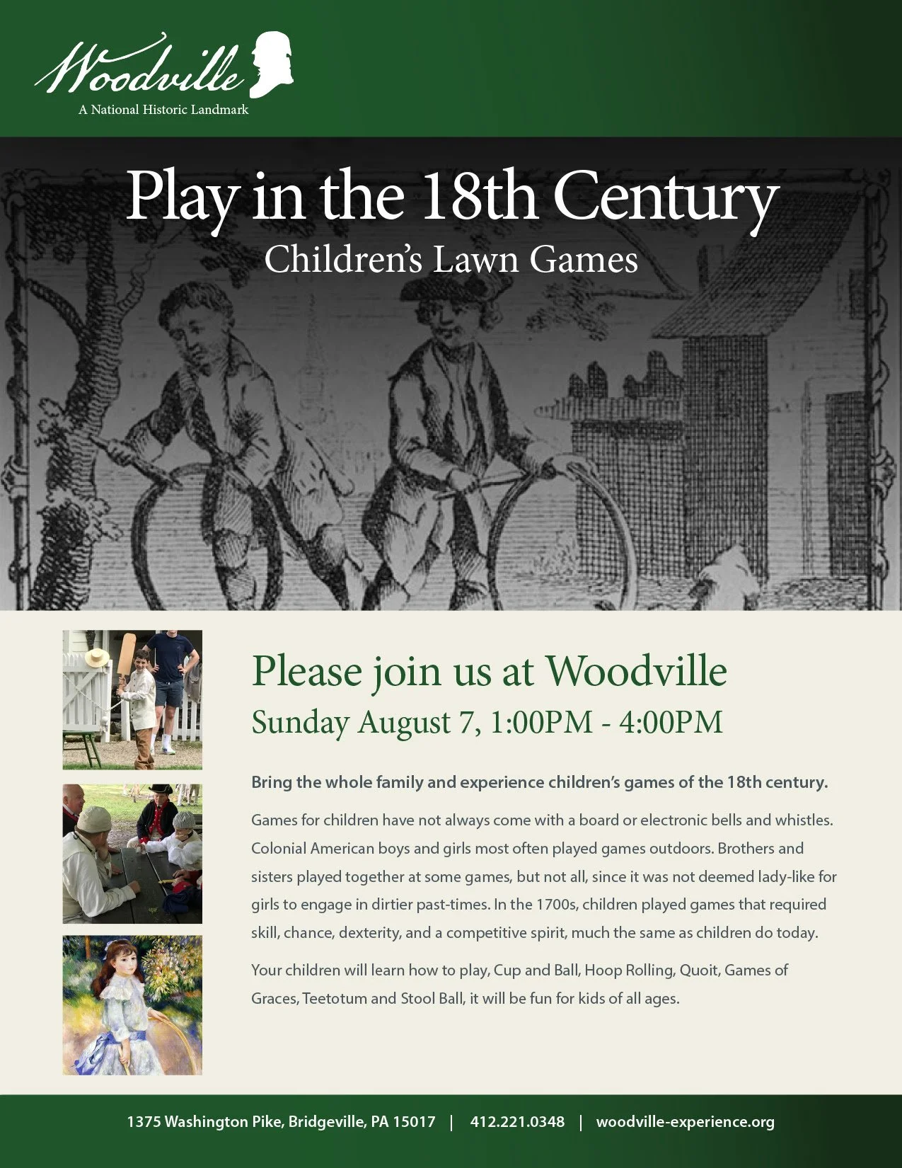 Your children will learn how to play, Cup and Ball, Hoop Rolling, Quoit, Games of Graces. Teetotum and Stool Ball, it will be fun for kids of all ages.