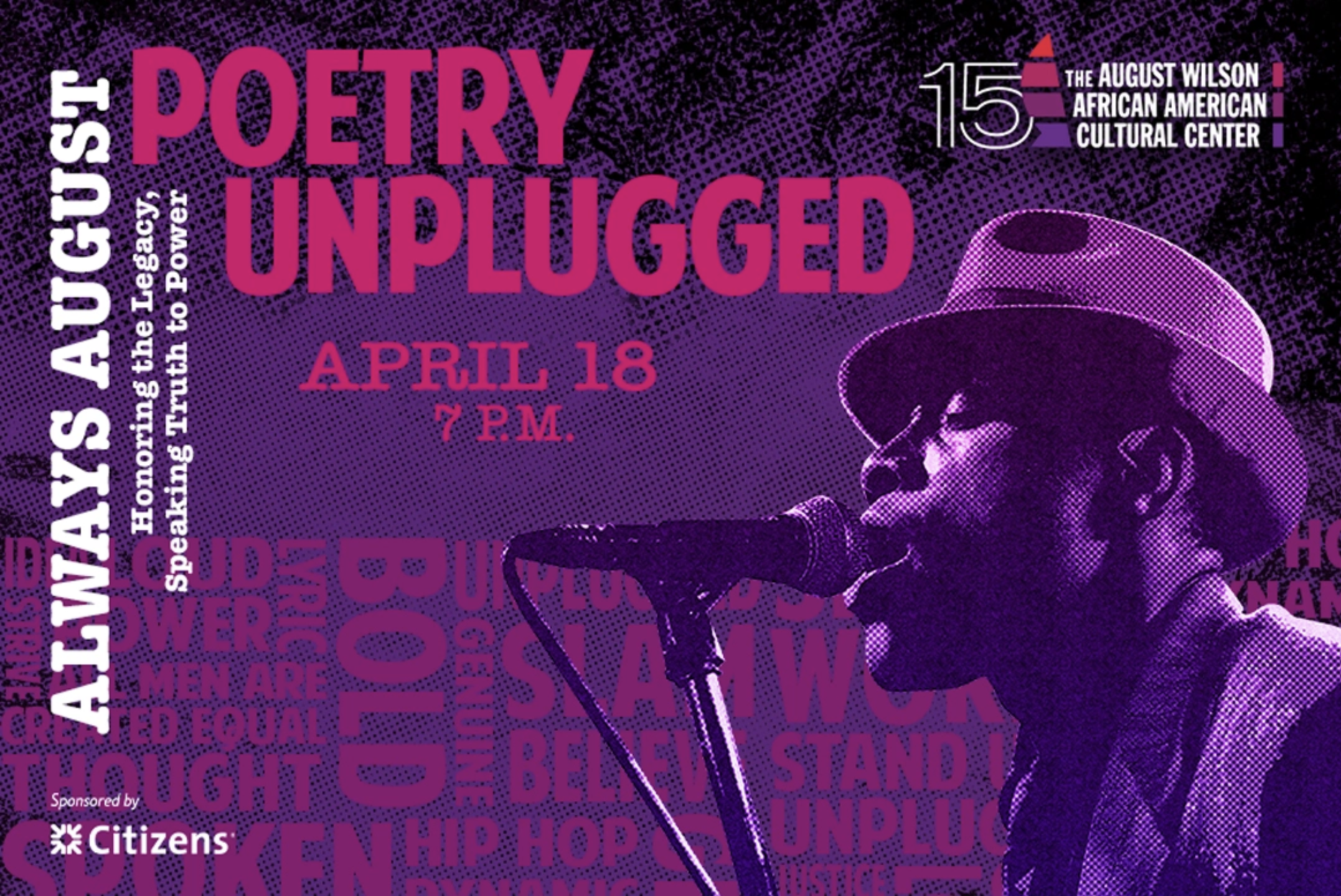 Join us for the highly anticipated annual event, Poetry Unplugged: Always August, presented with generous support from Citizens. This special evening will feature nationally renowned and award-winning spoken word artists as they take the stage to speak truth to power in the spirit of August Wilson, infusing humor, romance, justice, and equality into their performances.