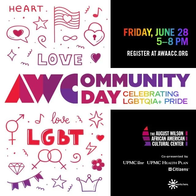 Join us for a special Pride edition of Community Day at the August Wilson African American Cultural Center on June 28, 2024 from 5-8pm, where we come together to celebrate unity, diversity, and love in the LGBTQIA+ community. This event is a vibrant and inclusive gathering that welcomes people of all backgrounds to come together in a spirit of joy and celebration. Enjoy a day filled with music, art, performances, workshops, and activities that honor the contributions and experiences of LGBTQIA+ individuals.