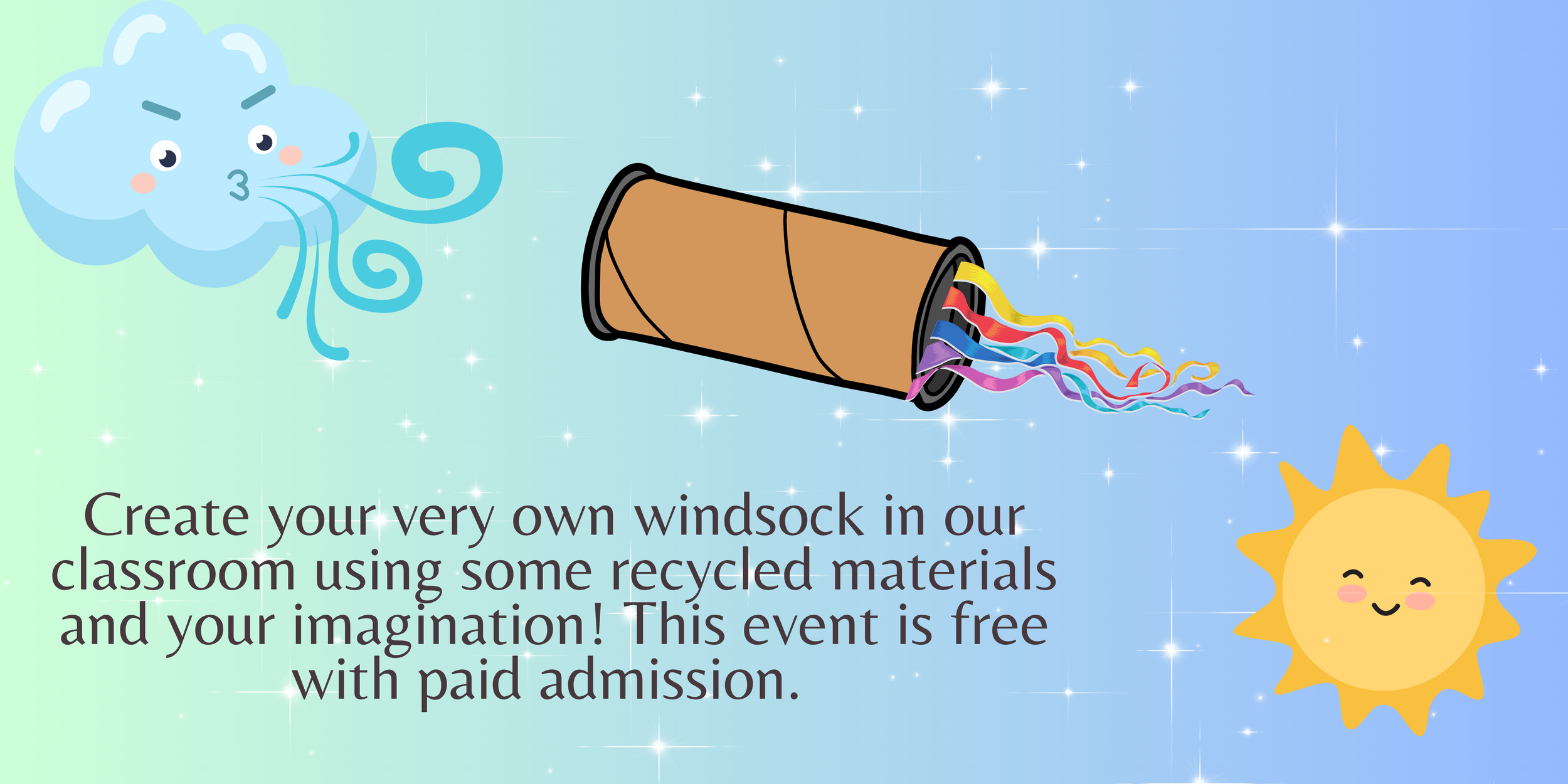 Create your very own windsock in our classroom using some recycled materials and your imagination! This event is free with paid admission.