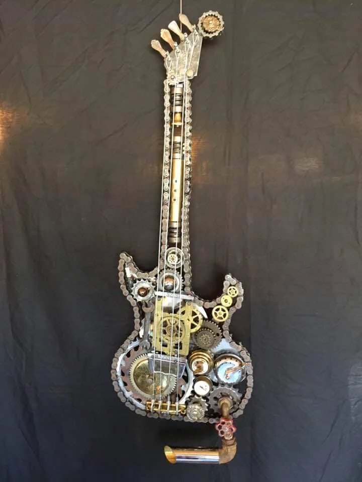 Cast-off metal waste becomes trains and ships, guitars and motorcycles. His sense of humor is welded into the many clever uses he finds for things. It’s riveting! (I just can’t help myself!!) The students at the Indiana County Technical Center have also created a couple of whimsical pieces you’ll see in the show as well. We’re so jazzed to have these new artists join The Hand for a very special exhibition!!