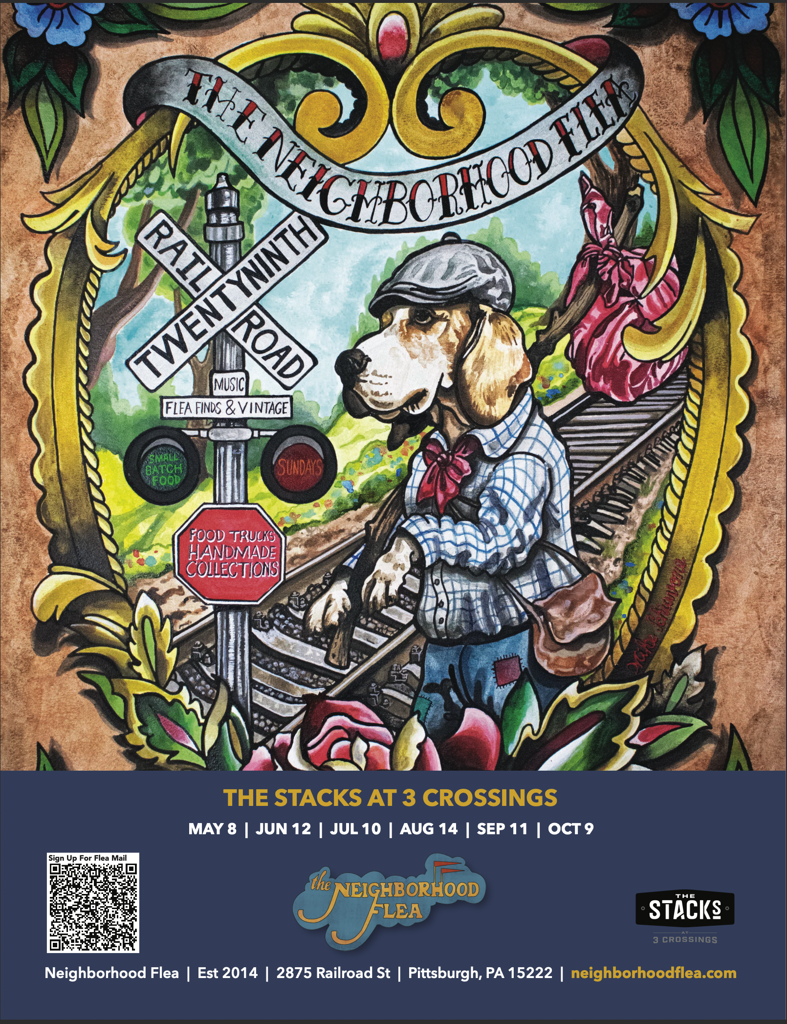 The Neighborhood Flea returns to the Strip District for its ninth year with a move one block down to The Stacks at 3 Crossings where its footprint will expand. The vibrant pop-up marketplace takes place each second Sunday of the month from May through October from 10 am to 3 pm. It is now able to serve more than 100 sellers along with food truck. Shoppers will find surprises around every corner.