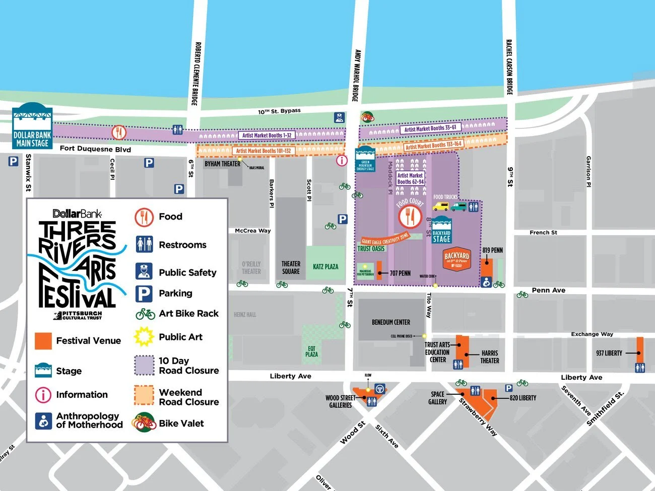 New Festival Layout The Festival’s revamped layout builds on the successes of last year’s event and offers an enhanced guest experience. One key change is the relocation of the Dollar Bank Main Stage to the intersection of Fort Duquesne Boulevard and Stanwix Street.