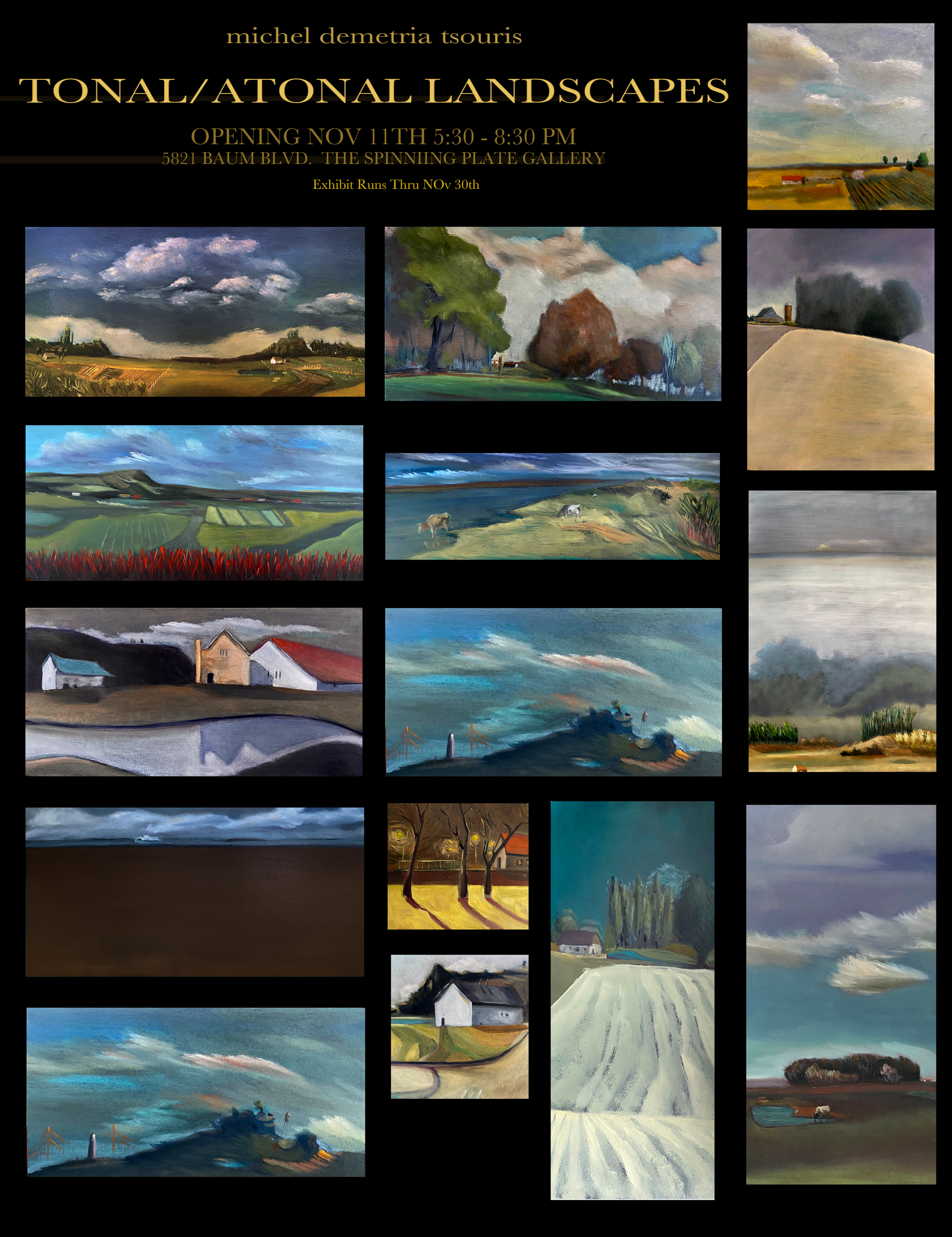 Tonal/Atonal Landscapse Opening Reception Thursday, November 11, 2021 5:30 PM 8:30 PM Spinning Plate Gallery (map) Google Calendar ICS