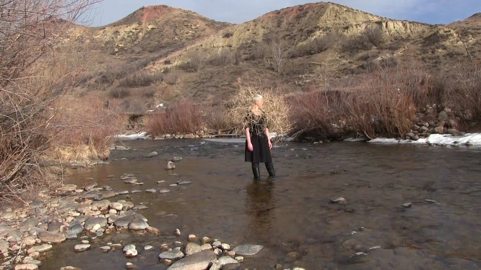 Turning In, 2019 is a video that chronicles the life of the artist accompanied by a tumbleweed while shopping, bathing, driving, and doing laundry while slyly questioning her ability to engage intuition and creativity.