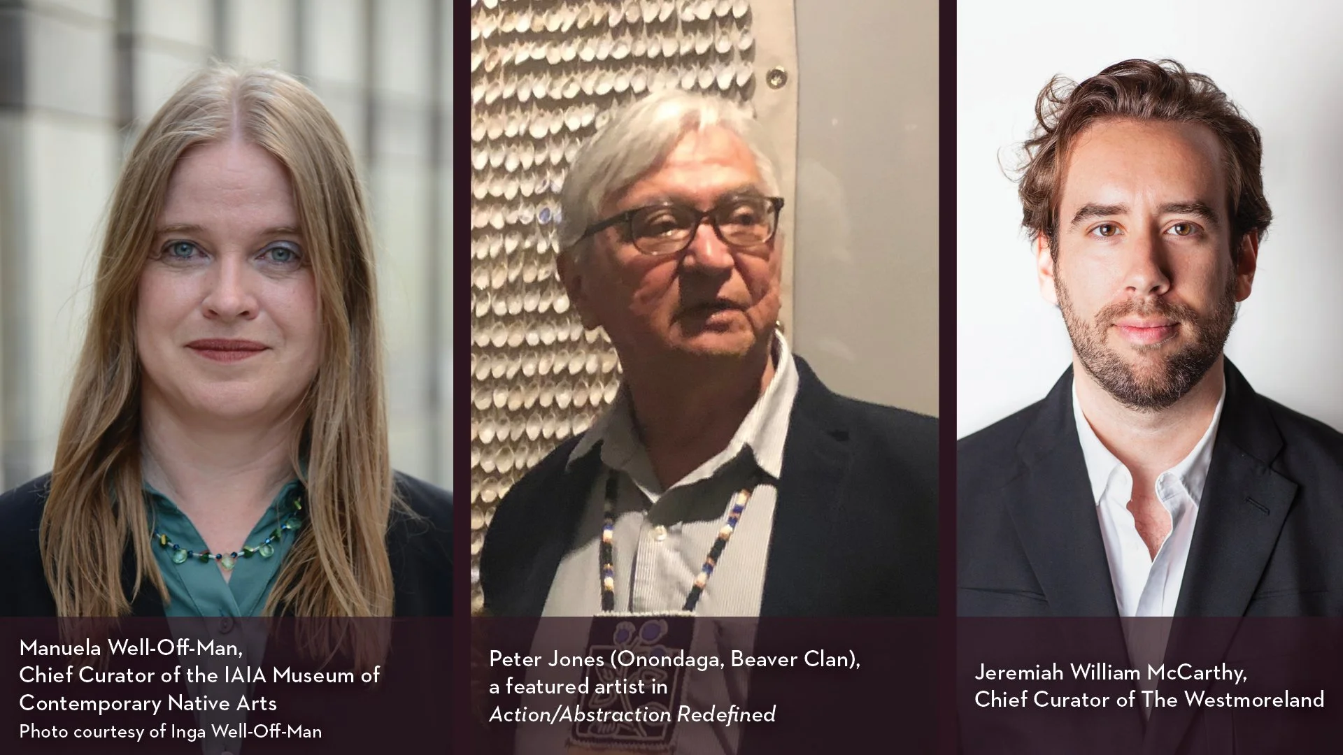 Join Jeremiah William McCarthy, Chief Curator at The Westmoreland, for this virtual program as he explores the exhibition Action/ Abstraction Redefined with Manuela Well-Off-Man, Chief Curator of the IAIA Museum of Contemporary Native Arts, and Peter Jones (Onondaga, Beaver Clan), a featured artist in the exhibition.